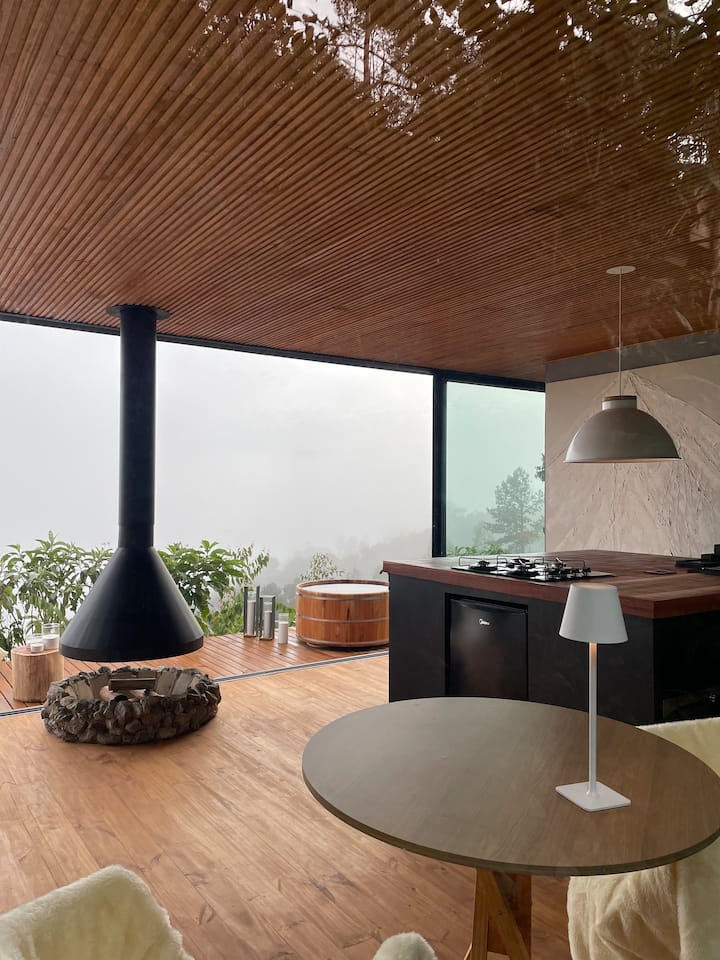 Experiência única! Fomos em casal e foi o melhor presente. A lareira, a sauna, o ofurô... tudo perfeito. A casa é muito mais bonita pessoalmente!